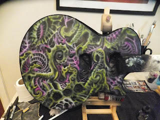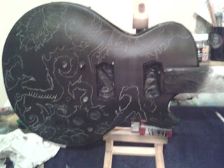 Organic biomech guitar by Robin Clement the various stages of painting and prep.